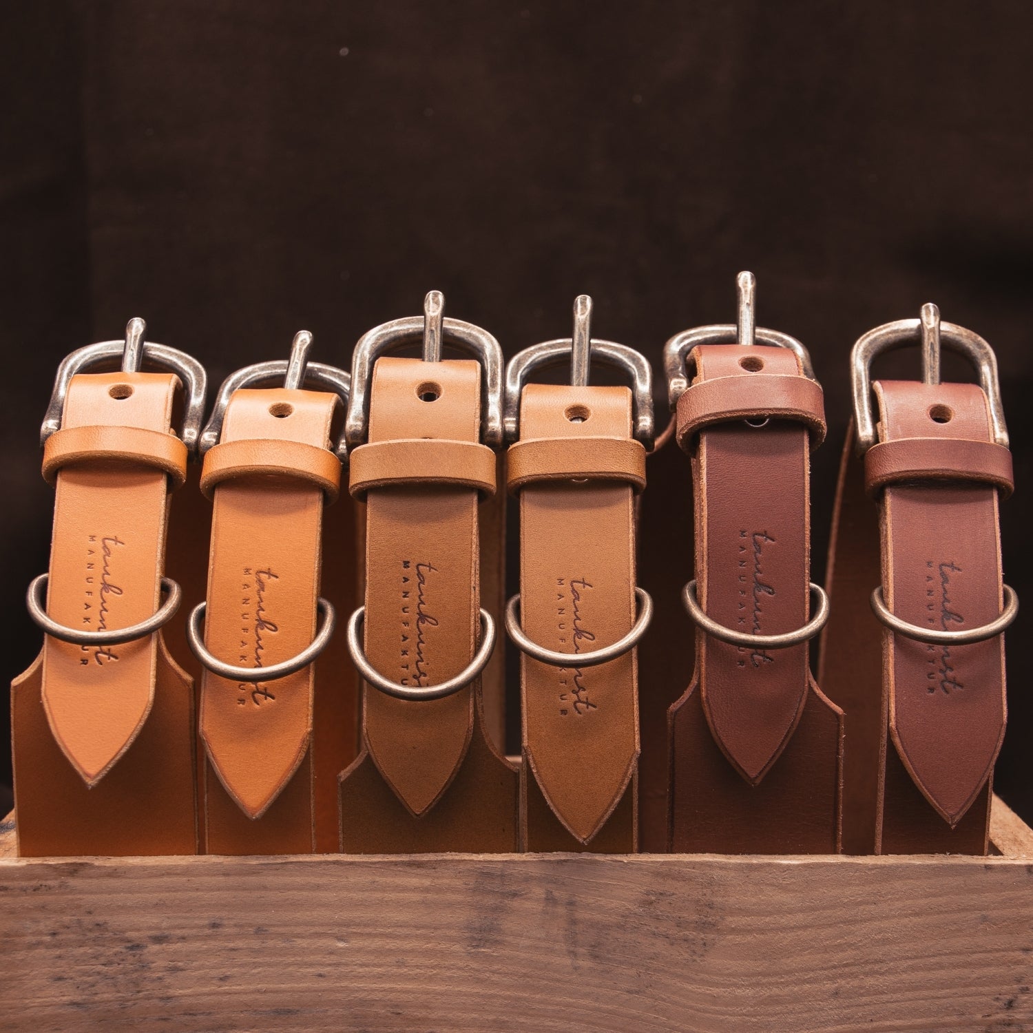 Das Lederhalsband in der Farbe Braun aus der ‚Waldstreuner‘ Kollektion wird in unserer Münchner Manufaktur in traditioneller Handarbeit gefertigt.