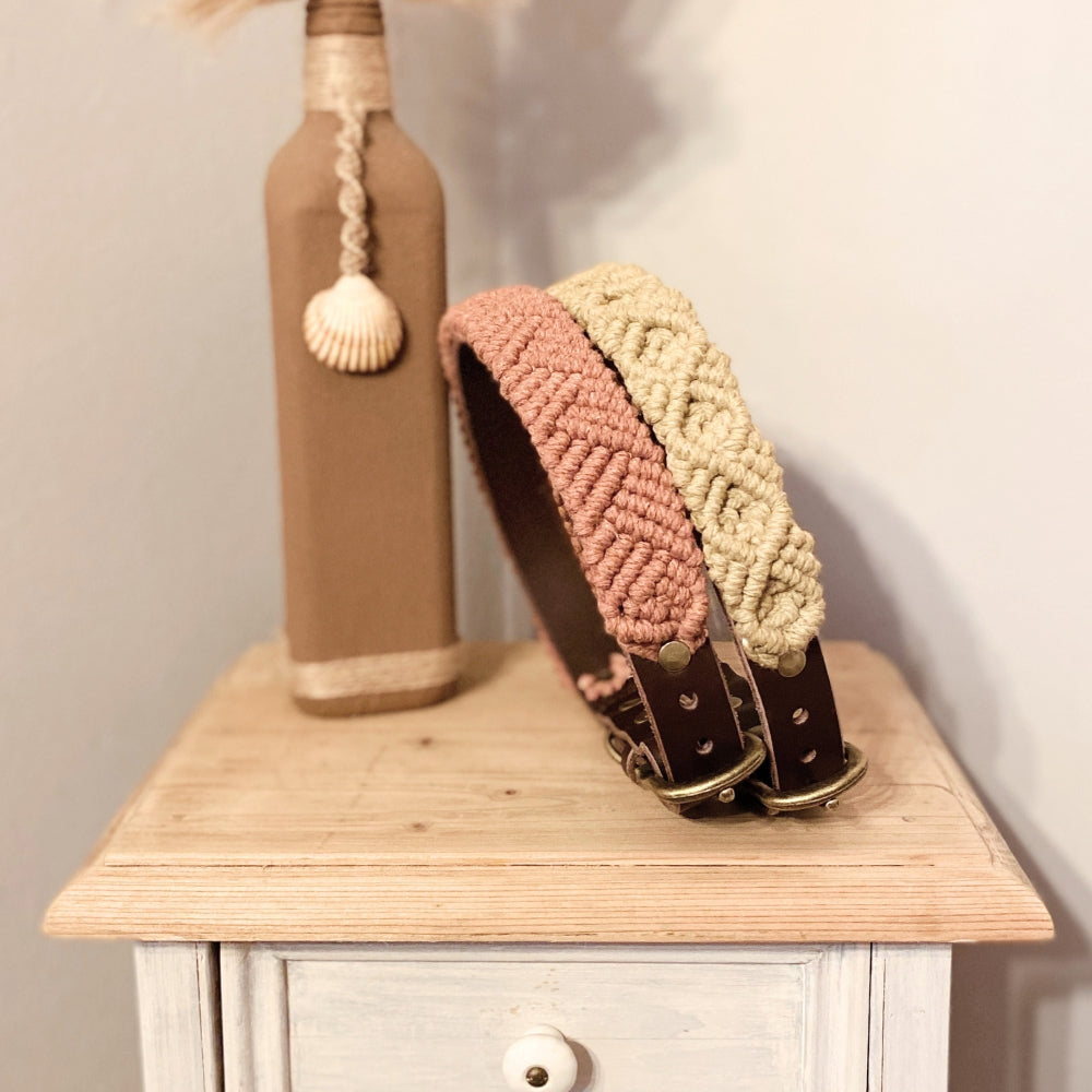 Von Hand wird der nachhaltige Baumwollgarn mit pflanzlichen Textilfarbe gefärbt. Diese sorgfältige Färbung macht dein Halsband zu einem Unikat.