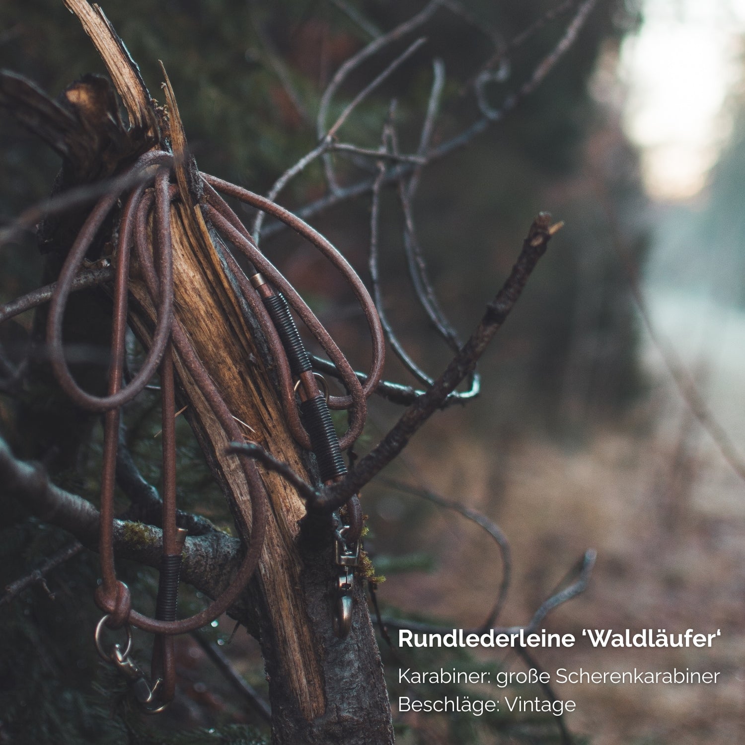 Die Rundlederleine in der Farbe Braun aus der ‚Waldläufer‘ Kollektion wird in unserer Münchner Manufaktur in traditioneller Handarbeit gefertigt.