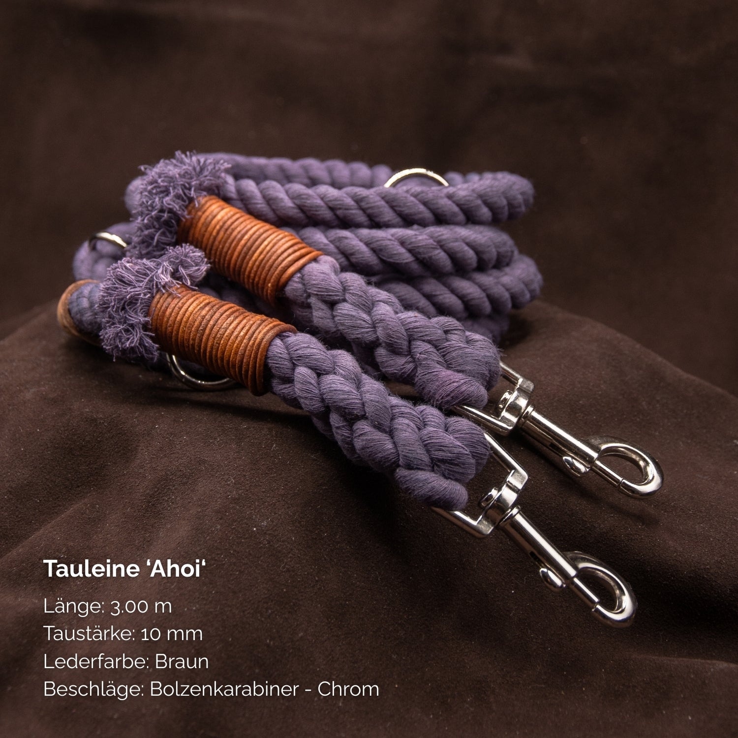 Die Tauleine in der Farbe Bordeaux aus der ‚Ahoi‘ Kollektion wird in unserer Münchner Manufaktur in traditioneller Handarbeit gefertigt.