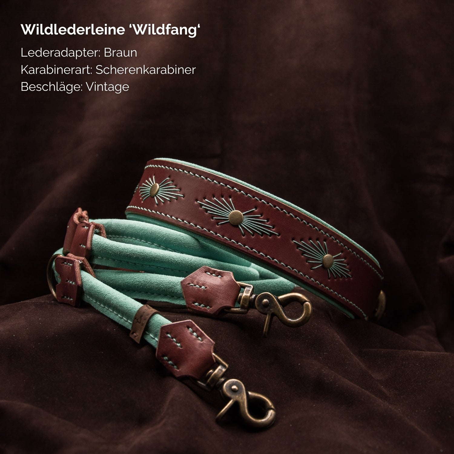 Die rundgenähte Wildlederleine in der Farbe Mint aus der ‚Wildfang‘ Kollektion wird in unserer Münchner Manufaktur in traditioneller Handarbeit gefertigt.